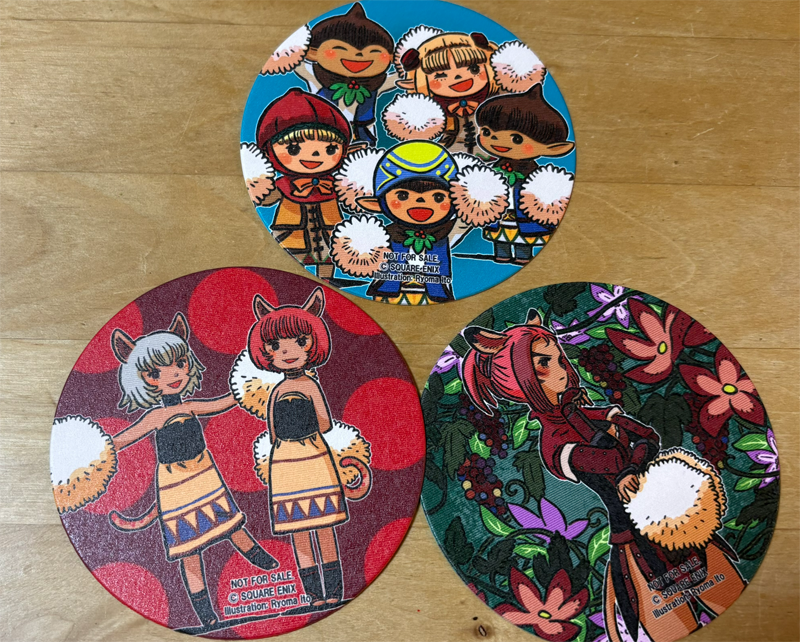 会場ではオススメにちなんだスペシャルフードとドリンクがあるそうです!FF11のイラストも多く手掛けられているイラストレーター・伊藤 龍馬さんのコースター3種がランダムで付属するとは、これまた商売上手・・・!! 初詣代わりに課金することやむなしですね!!(まだ初詣行ってない)