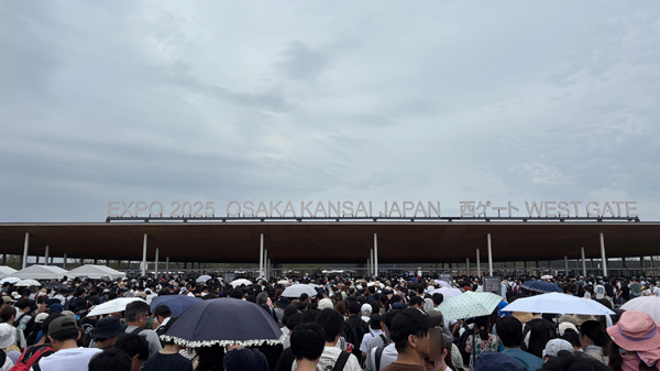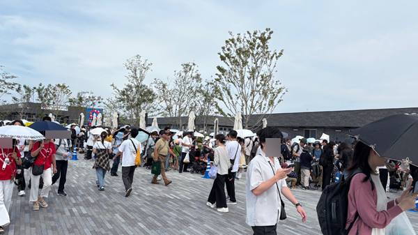 灼熱地獄のミャクミャクくじ(ハズレ無しのぬいぐるみクジ)列を尻目に・・・(数百人レベルで並んでいるが、どうやら最大3時間待ちらしい・・・修行以外の何物でもない。)