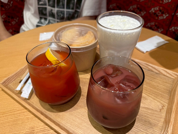 まずはスイカジュース、ザクロジュースが到着。そして奥のなんか泡立っているものは何だ・・・?
