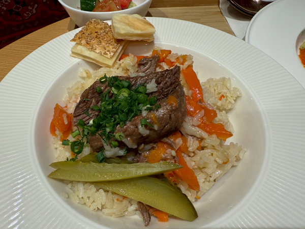 レストランはトルクメニスタンの伝統的な料理が食べられるらしいが、東京でもトルクメニスタン専門料理屋は見たことないので、レア度は相当に高いと思われる。