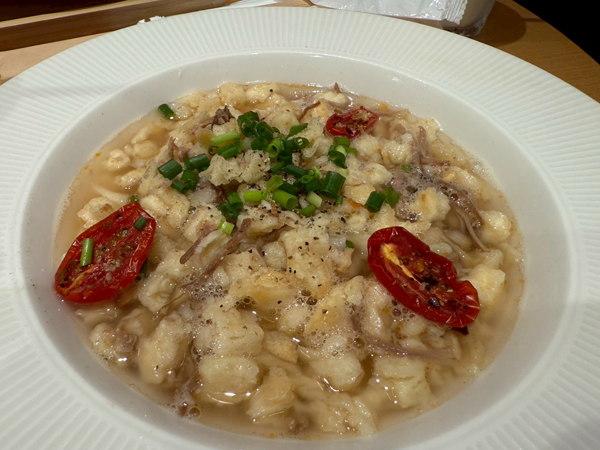やさしい味のスープに浸されたものは何かというと、フラットブレッドとのこと。