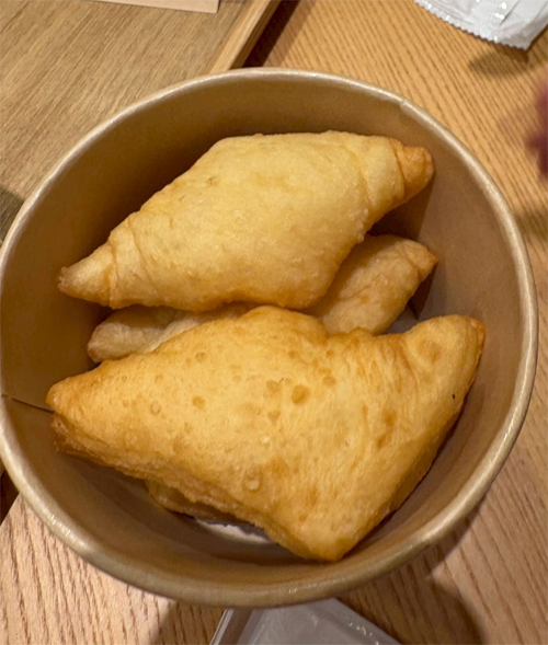 揚げパンのようであるが、特に甘くはなく、食感はムチムチとしていて、いくらでも食べられそうである。