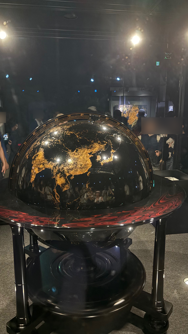 輪島塗の大型地球儀で、黒に金が眩くて美しい・・・・・・。
