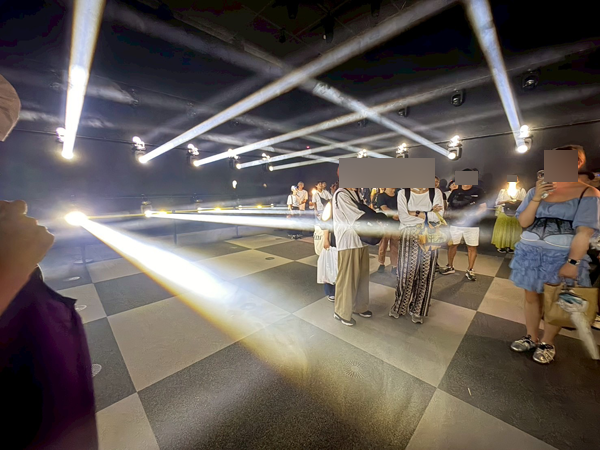 中は多量のスポットライトや、吐く息を(つまりは二酸化炭素を?)泡に変換するインスタレーションがあり 少し他とも毛色が違う。