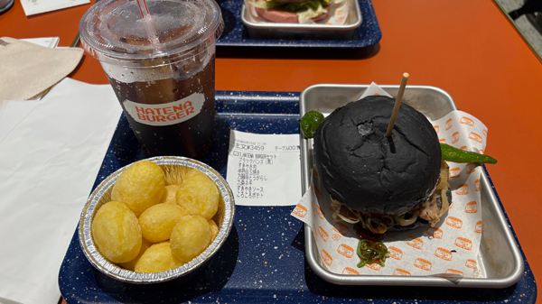昼前なので、まずは場内のカフェ「HATENA BURGER」へ。