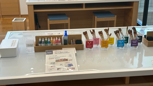 任天堂といえば創業時は花札のメーカーだったのは周知の事実ですが、花札をちょっと作ってみようじゃないかという体験コーナーなわけです。