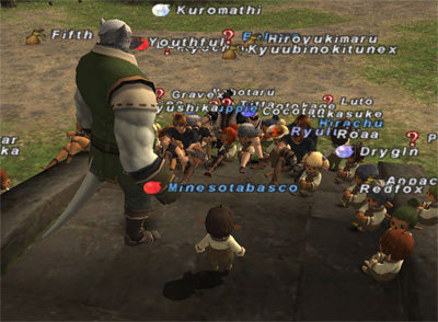 ![]() 第4回 ヴァナ芸人のオールスター大会 LAUGHTER MANIA 2005 マイケルサイト(Minesotabasco) Side Part2 ■オイイイイィィィーーーー!!!!?? ![]() なんとか港区・裏会場のユキヒデさんのところへ辿り着く。 ミネソタバスコこと(管)のゲスト出演は数分後。 (Yukihide) (管)さんー お葉書をよむので (Yukihide) それに答える形でおねがいします (Minesotabasco) 承知しました! 打ち合わせらしい打ち合わせはコレだけだった!!((((゜д゜;)))) アノだからボク素人なんですが!!!((((゜д゜;)))) ウィンダス港 376人・・・。 あぁもう・・・もうアタイを好きにして・・・・・・(ノ∀`) ■ユキヒデさんのお部屋 ゲスト:Minesotabascoこと(管) Yukihide : はい、それでは Yukihide : 今回のゲスト Yukihide : 【スーパークライム】 Yukihide : できるスーパー【ナイト】の Yukihide : (管)さんでございますー Minesotabasco : こんばんわぁぁぁぁぁ!(ノд`*) ![]() ちょ!!!!!! キミら目を覚ませエエェェェーーー!!!((((゜д゜;)))) こんな薄汚れたやさぐれ内藤なんか見ても!!! Yukihide : マイケルー〜でお馴染みの(管)さんをお招きして Yukihide : トークを行いますよ〜 Minesotabasco : 楽しみだぁ(*´д`*) いやまぁ心臓がポロリしそうになっていましたが。 ■おはがきトーク ------------- Yukihide : それでは、ここでお葉書が届いております。 Yukihide : ■ペンネーム:なすびさん Yukihide : ゆっきーさん、(管)さん 【こんばんは。】 できるスーパーナイトとしての心得を教えてください。 Yukihide : そういえば セブンティーファイブ おめでとうございます。 Minesotabasco : いやぁどうもありがとうございます! Minesotabasco : もうね皆さん74になるのを期待しすぎです! Yukihide : ダウンですねw Minesotabasco : うん、お断りだ^^ Yukihide : スーパーナイトとしてはどうでしょうか?心構えは Minesotabasco : スーパーナイトの心得ですか ![]() Minesotabasco : とりあえず【かばう】とかはもう忘れてください^^ ![]() Minesotabasco : み、みんな・・・【かばう】は有料なんだよ!? *「だいてーーー!!!」って何だ(;;´―`) Yukihide : サポはなんでしょうか? Minesotabasco : サポですか、うーん Minesotabasco : 以前、ナ65/シ15 で何食わぬ顔でリーダーしてましたね^^ ![]() Ryushika : サポ割れしすぎスwww *実話なのよ。 ■ユキヒデさんによる内藤ネタ!! ------------- ![]() (*これは実際に公演で聞いて下さい!) ---------------------------------------------- -おはがき続き- Yukihide : それでは、ここでお葉書が届いております。 Yukihide : ■ペンネーム:長州中力さん Yukihide : ゆっきーさん、(管)さん 【こんばんは。】 Yukihide : こんばんわー Minesotabasco : こんばんわ! マイコーについてありったけの想いを伝えて下さい。 Yukihide : ゴブ紀行面白いですよね。 Minesotabasco : マイコーはゴブ紀行からはじまりましたからね! ![]() Minesotabasco : えーとゴブ紀行 前回の更新は2004年12がt Minesotabasco : [+]<更新期間には触れないで下さい Minesotabasco : マイコーについてアツおもいですか! Yukihide : (打ち合わせしてないので手打ちで返答してるので遅いのはゆるしてねw Minesotabasco : (【ばら】しちゃダメ!! *事実でしたが(ノ∀`) Yukihide : マイケルとお会いできればいいですよねー Minesotabasco : ちょっと想いが届くように叫んでみますね ![]() Yukihide : ありがとうございましたw ![]() ![]() *(管)はビール(中)半分で寝ますので! Yukihide : それでは、ここでお葉書が届いております。 Yukihide : ■ペンネーム:Floruaさん Yukihide : ゆっきーさん、(管)さん 【こんばんは。】 Yukihide : こんばんわ Minesotabasco : こんばんはー! どうして阪神は日本一になれなかったんですか? 0−4は... Yukihide : ワンサイドゲームだったですよね。 *えぇーーー!!いきなり阪神の話!?((((゜д゜;)))) Yukihide : (いきなり今ネタふっております 大喜利みたいになってきましたw Minesotabasco : あれはいかんですよねー! Minesotabasco : こうね、グリーンウェルを4番にすえてこうねあぁだこうだ Alphantom : いつの時代だ?w Minesotabasco : !! Yukihide : グリーンウェルってwなんねんまえのw Momoirotokage : 10年ぐらい前? Yukihide : バースの後じゃなかった?w Minesotabasco : 3億くらい払って2ヶ月でテキサスあたりかえったよね・・・w Koutyaso : バースwwナツカシsっww えぇ、実にオッサンなネタでした・・・(ノ∀`) *グリーンウェルとは? Yukihide : それでは、ここでお葉書が届いております。 Minesotabasco : はい! Yukihide : ■ペンネーム:おんじ(おでん)さん Yukihide : ゆっきーさん、(管)さん 【こんばんは。】 Yukihide : こんばんわー Minesotabasco : こんばんはー! エル爺のナイスガイですがLSメンに「お爺ちゃんお口臭い」 と言われたのですが【どうすればいいですか?】 Yukihide : という、深刻なご質問をちょうだいいたしました。 Minesotabasco : これはまずいですね・・・! ![]() Minesotabasco : まぁお爺ちゃんですから、気にしなくてもあと数年でコレ! ![]() Yukihide : ブラックですねーw Yukihide : ありがとうございましたw ![]() Yukihide : それでは最後に Yukihide : (管)さんから Yukihide : なにか一言 Minesotabasco : はい! Yukihide : といって Yukihide : なにか Yukihide : とかいっ
