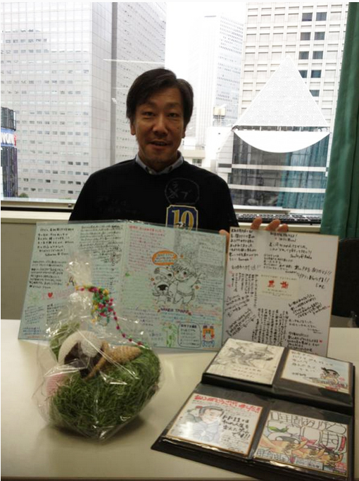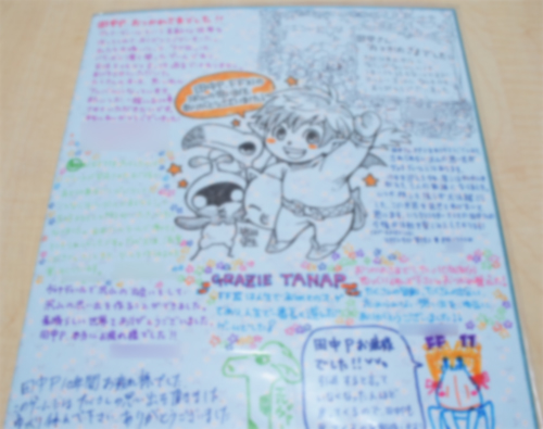 ありがとう田中P、寄せ書きの小さな旅 ![]() ヴァナフェス2012でFFXIプロデューサー勇退、スクウェア・エニックス退社を明かした田中P。 10年間プロデューサーを務め上げ、内外から大変慕われていました。 ![]() ![]() 僕らは田中Pにサインしてもらってばっかりですが、たまには逆に我々が書く側に回ってみるのはどうでしょう。 つまり・・・「寄せ書き」を【やらないか】。 このようにして、「寄せ書きの小さな旅」がスタートしました。 ■7月第1週「まずはスタート」 ![]() とりあえずサイトを作ってみました。 色紙は入手した!さぁこれからだ! まずは第一歩ということで、光速で参加表明をして頂いた、皆川史生さんに表紙をお願いしました。 ![]() おお!これはステキ!そして、やはりここにもコリブリが!(大変お好きだそうです) 色紙はUNDOが効かない一発勝負。入魂で書いて頂きました。 一方その頃・・・ ![]() 詳細もまだ決まっていないのに、初日だけで38件の問い合わせが! みなさまのアツいソウルを感じます。 そして、準備を重ねること1週間。東京地区の寄せ書き大会が開催! ■7月14日(土)くもり やや蒸し暑い 東京地区寄せ書き大会1日目 ![]() 会場は新宿・・・!! ![]() の某所前! ひっそりと、かつ、紳士的に寄せ書きをする会がスタートしました。 ![]() いの一番に現れたヤングメン。指にさりげなく光るサンドリアリングが、ストレングスをプラス1します。 ![]() 有志の方が次々と思いのたけを色紙に込めていきます。 ![]() この方はアストラルリング!なんという指輪祭!ここは新宿という名のオズトロヤなのでありましょう。(意味不明) ![]() ご自分が愛用されている筆記用具で、カラフルに仕上げて頂いた方もいました。 ![]() ご家族でいらっしゃった方もちらほら。FFXIの10年を感じます。子ミスラさんがお二人。 アラマァ地球儀しかないところだけどユックリシテラッシャイ(*´Д`) ![]() 初対面なのにすぐに仲良くなってました。アラマァホホエマシイ(*´Д`) 思わず撮ってしまいました。おじさん怪しくないよーおじさん妻子持ち(娘0歳)だから怪しくないよー ![]() そうこうしている間に、色紙はどんどん埋まっていきました。梅雨明け前だったので 雨になるんじゃないかと心配していましたが、次第に晴れていきました。 これもアルタナのお力なのでしょう。 暑い中、汗だくになりながらもなんとか間に合った方から ![]() アツいシャウトを頂きました。 この日は、そのまま西の方まで遠征して、寄せ書きを加えつつ終了。 ■7月15日(日)晴れ 灼熱 東京地区寄せ書き大会2日目 新宿に行く前に・・・この日はなんと千葉県のとある授乳室からスタート! おじさん怪しくないよーホント(ry ・・・というのも、生まれたばかりの赤ん坊がいるため、遠出はできないが ぜひ色紙に田中さんへ一言を・・・!という方がいらっしゃったので、 近所だったこともあり直接伺いました。 ![]() その後、新宿へ。 この日は照りつける強力な日差しの中、様々な紳士・淑女たちが駆けつけてくれました! 早朝から色紙に貼るシールを準備してくれていた方もいらっしゃいました。 また、この日も様々な支援物資を持ってきて頂いた方が多く、本当に助かりました。ありがとうございました。 バーンでスリップダメージを受けていましたが、お陰さまでなんとか持ちました。 東京地区の寄せ書きには20代前半の方から、田中Pと近い世代のご夫婦まで、老若男女 40数名の方に参加して頂きました。 ■全国から続々と届くメッセージ ![]() 遠方からも続々と田中Pへのメッセージが寄せられました。 もっとも遠い方で、北海道と鹿児島県。関西や中京地方からも多くの参加者がいらっしゃいました。 中にはマンドラゴラの編みぐるみも一緒に送って頂いた方も。 スゴイよくできていますね! ■最後の旅 東京地区はその後、平日夜に往復3時間かけて書きに来た方、 徹夜明けでフラフラなところ寄り道して書きにきた方 直接家にいらっしゃった方などが書いていき、気づいたら4面あった色紙の表紙以外が全て埋まっていました。 その後、再び西の方に遠征して・・・ついに完成!! ![]() ![]() イラスト書ける人がうらやましい・・・。シールもとても可愛いですね! ![]() ここに約50人分の想いが詰まっています。 ![]() ここにイラストを書いて頂いた方も 「この色紙には50人分が・・・UNDOが・・・」 と悩みつつ、思いのたけを書いて頂きました。 ![]() あらお久しぶり。 ![]() 飛び入りで、関西地区の10数名の方からも超特急で色紙が届きました。 ありがとうございました。お陰さまで間に合いました。 ![]() ミニ色紙の方も全国から約30名の方が送ってきてくれました。 一筆入魂で想いを伝えた方、イラストを描かれた方、押し花や、切り絵などを使われた方 全て傷がつかないように大切にアルバムの方に収めさせて頂きました。 ![]() すさまじい厚みだ・・・! ![]() この人もきれいに収めまして・・・! ![]() Tシャツはフリースタイルで書きましょう!とスタイルを決めて