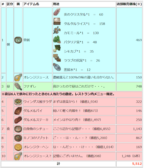 (※)非売品、合成品はショップ「売値」からの推定です。実際の取引値とは異なります。 販売国は無視しています。(買値/売値 → 売値の約4.3倍が買値(タルタルスツールを基準))