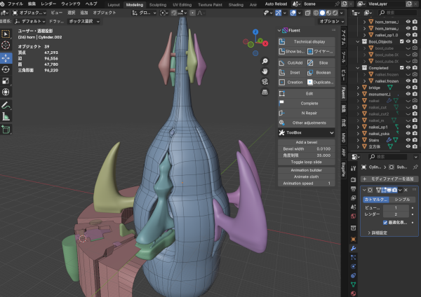 ・・・・・・Blenderで作ったイブノイルをfbxでエクスポートして・・・