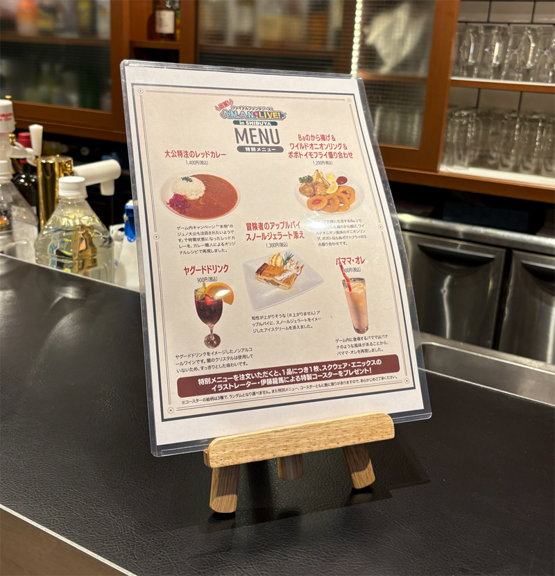 会場ではオススメにちなんだスペシャルフードとドリンクがあるそうです!FF11のイラストも多く手掛けられているイラストレーター・伊藤 龍馬さんのコースター3種がランダムで付属するとは、これまた商売上手・・・!! 初詣代わりに課金することやむなしですね!!(まだ初詣行ってない)