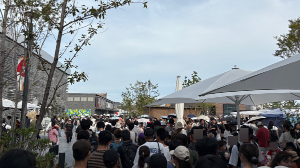 灼熱地獄のミャクミャクくじ(ハズレ無しのぬいぐるみクジ)列を尻目に・・・(数百人レベルで並んでいるが、どうやら最大3時間待ちらしい・・・修行以外の何物でもない。)
