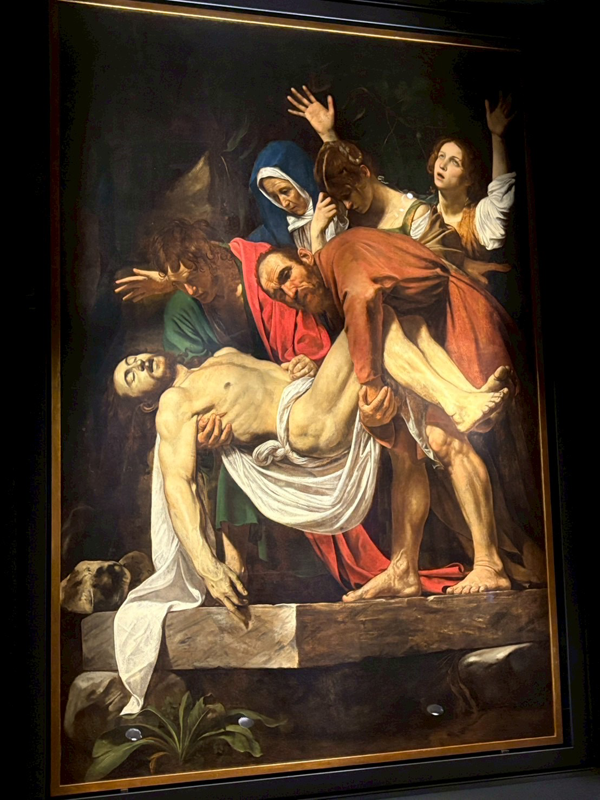続く部屋にあるのは、カラヴァッジョの「キリストの埋葬」。 十字架から降ろされ、嘆きの中で埋葬されるキリストの姿が非常にリアルで、500年も前の作品とは思えない・・・。