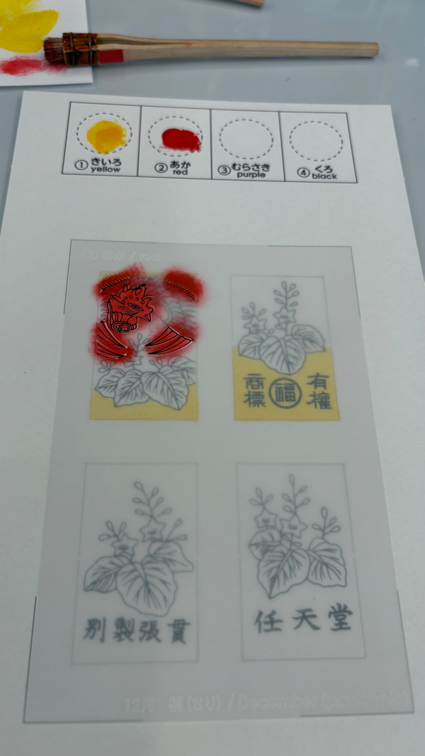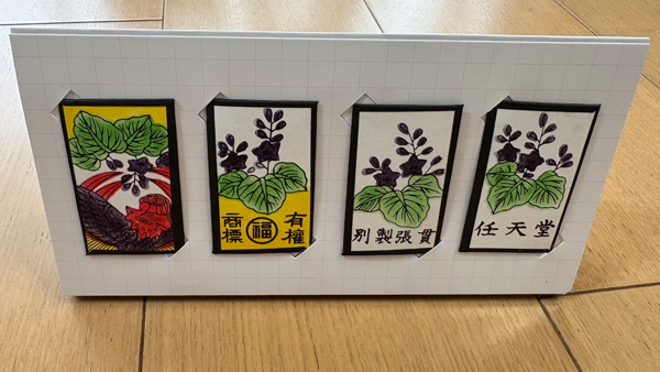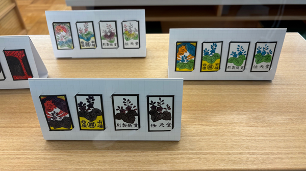 任天堂といえば創業時は花札のメーカーだったのは周知の事実ですが、花札をちょっと作ってみようじゃないかという体験コーナーなわけです。
