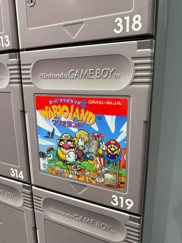入口の無料ロッカーで荷物を預かってくれるのですが、ゲームボーイのカセットになっているのもまた良い・・・。